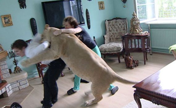 Αυτό το ζευγάρι κρατά το κατοικίδιο λιοντάρι του σε ένα κλουβί στην πίσω αυλή του σπιτιού, σε προαστιακή περιοχή της Αμερικής. Το ταΐζουν κρέας στην κουζίνα τους και το αφήνουν να περιφέρεται ελεύθερα μέσα στο σπίτι. Τέτοια ζώα φυσικά δεν είναι για κατοικίδια και ήρθε η μέρα που αποφάσισε να παίξει με έναν από τους ανθρώπους που επισκέφθηκαν την οικογένεια για να ετοιμάσουν μια εκπομπή για το ιδιαίτερο αυτό κατοικίδιο…δείτε την συνέχεια στο βίντεο που ακολουθεί…
