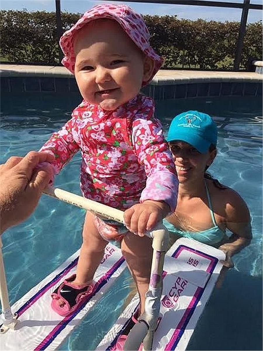Σύμφωνα με τη Daily Mail, η μικρή φόρεσε μικρά πέδιλα του σκι που συνδέονταν μεταξύ τους με ένα κομμάτι ξύλο. Φορώντας το σωσίβιό της κρατιόταν από μία λαβή που ήταν συνδεδεμένη με τα πέδιλα του σκι, μία τεχνική που χρησιμοποιείται και σε ανθρώπους με κινητικά προβλήματα που θέλουν να απολαύσουν το αγαπημένο τους σπορ.