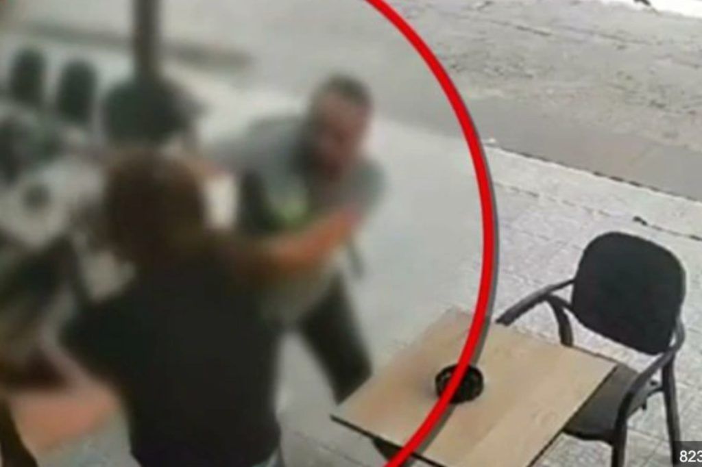 Χωρίς να είναι γνωστό τι προκάλεσε την οργή των δύο, σηκώνονται από το τραπέζι και αρχίζουν να ξυλοκοπούν άγρια το θύμα που σχεδόν αμέσως δέχεται ένα χτύπημα και σωριάζεται στο έδαφος. Δεν διστάζουν δε να χτυπήσουν και μια ξανθιά γυναίκα που τους ζητά τον λόγο ρίχνοντάς την στο έδαφος.