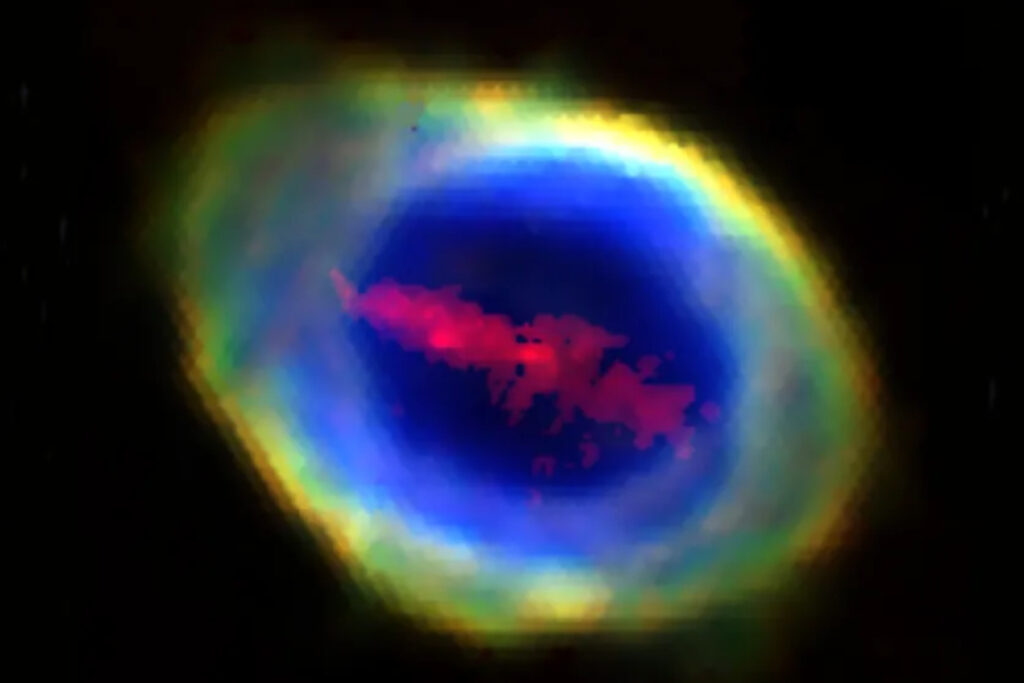 Οι επιστήμονες ανακάλυψαν ένα μεγάλο, ραβδόμορφο νέφος ατόμων σιδήρου στο Διάστημα, το οποίο θα μπορούσε να προσφέρει ενδείξεις για το μέλλον της Γης. Η δομή αυτή, που εντοπίστηκε μέσα στο Δακτυλιοειδές Νεφέλωμα — ένα γνωστό, πολύχρωμο νέφος που σχηματίστηκε όταν ένα ετοιμοθάνατο άστρο παρόμοιο με τον Ήλιο απελευθέρωσε τα εξωτερικά του στρώματα — είχε πλάτος περίπου 500 φορές μεγαλύτερο από την τροχιά του Πλούτωνα και βρίσκεται σε απόσταση 2.283 ετών φωτός.