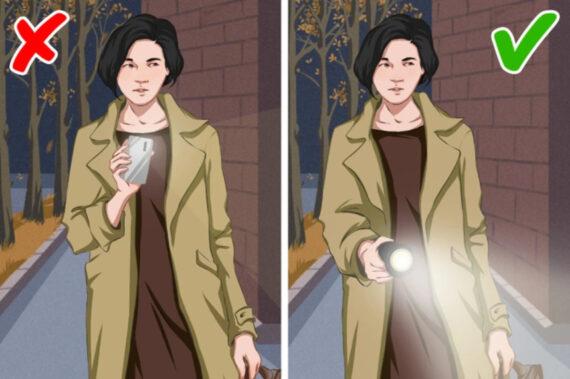Πρώτον, ένας φακός είναι λιγότερο ελκυστικός για τους ληστές από το τηλέφωνό σας. Δεύτερον, εάν κάποιος σας επιτεθεί, μπορείτε να χρησιμοποιήσετε τον φακό για να χτυπήσετε τον εισβολέα ή για να κάνετε σήμα για βοήθεια όταν δεν μπορείτε να φωνάξετε ή να τηλεφωνήσετε.