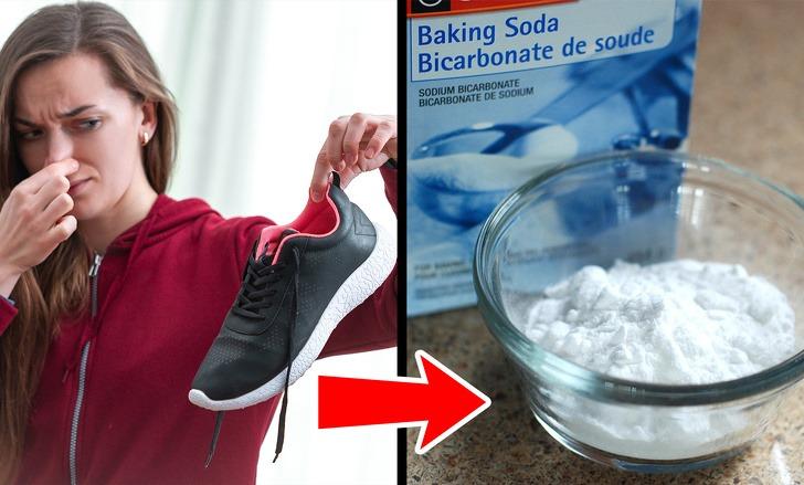 Δεν είναι ωραίο όταν βγάζετε τα παπούτσια σας και μυρίζει σαν να τρέχατε για μια εβδομάδα χωρίς να έχετε σταματήσει. Απλά βάλτε μαγειρική σόδα στα παπούτσια πριν πάτε κάπου έτσι θα απορροφήσει όλη την οσμή και τον ιδρώτα.