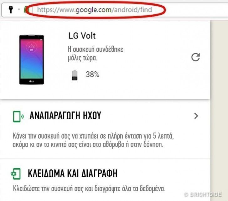 Για να βρείτε το τηλέφωνό σας στο σπίτι, αντιγράψτε και επικολλήστε τη διεύθυνση www.google.com/android/find στην μπάρα τοποθεσίας του προγράμματος περιήγησης. Το σύστημα θα σας καλεί για 5 λεπτά ακόμη και αν η συσκευή σας είναι στην αθόρυβη λειτουργία.