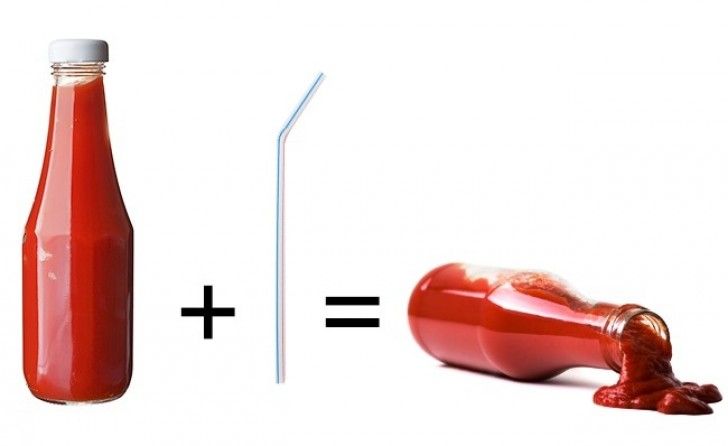Για να κάνετε την ροή της κέτσαπ γρηγορότερη, απλά βυθίστε ένα καλαμάκι μέσα στο μπουκάλι.