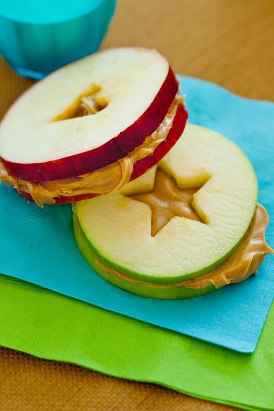 Ιδού: Σάντουιτς από μήλο (μπας και φάνε επιτέλους κανένα φρούτο) Κόψτε δυο χοντρές φέτες μήλου, φτιάξτε με ένα μυτερό μαχαίρι ένα σχέδιο στο κέντρο του, “γεμίστε” το με φυστικοβούτυρο ή μαρμελάδα και το φρουτένιο σας σάντουιτς είναι έτοιμο!