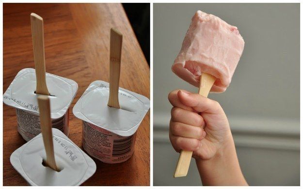 Αυτοσχέδια και υγιεινά γιαουρτοξυλάκια Αν προσπαθείτε να πείσετε το παιδί να φάει γιαούρτι με μέτρια αποτελέσματα, αυτό το κόλπο ίσως σας λύσει τα χέρια. Προμηθευτείτε απλώς ξυλάκια παγωτού, βάλτε τα σε κάθε γιαουρτάκι, τοποθετήστε τα στην κατάψυξη και, μερικές ώρες μετά, απολαύστε τα.