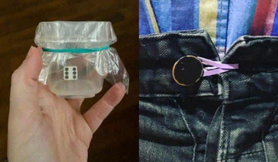 Μέχρι να ξεκινήσετε δίαιτα και μέχρι να καταφέρετε να χάσετε μερικά κιλά, αυτό το έξυπνο κόλπο θα σας λύσει τα χέρια. Αν δεν κουμπώνει το κουμπί του jean σας για μερικούς πόντους, δεν χρειάζεται να απογοητεύεστε. Κουμπώστε το, δένοντας ένα λαστιχάκι από το κουμπί μέχρι την τρύπα του κουμπιού.
