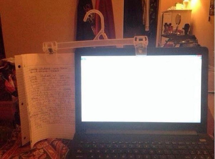 16. Αν θέλετε να γράψετε κάτι στον υπολογιστή σας, απλά στερεώστε το χαρτί με μια κρεμάστρα με κλιπ.