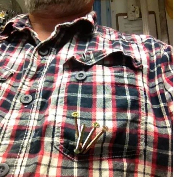 6. Βάλτε έναν μαγνήτη στην τσέπη του πουκάμισου σας για να στερεώσετε τα καρφιά σε περίπτωση που έχετε να κρεμάσετε κάτι ψηλά και ανεβείτε σε σκάλα.