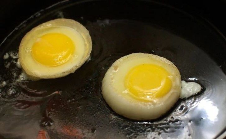 9. Για αβγό σε τέλειο κυκλικό σχήμα, τηγανίστε το μέσα σε μια ροδέλα κρεμμύδι.