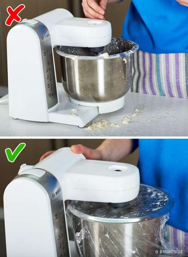 Αν χρησιμοποιείτε μίξερ με κάδο για να φτιάξετε τα αγαπημένα σας γλυκά, τότε σίγουρα γνωρίζετε πόσο ακατάστατη μπορεί να γίνει η κουζίνα σας! Αλλά αν σκεπάσετε προηγουμένως τον κάδο με πλαστική μεμβράνη, αυτό το τεράστιο χάος μπορεί να αποφευχθεί.