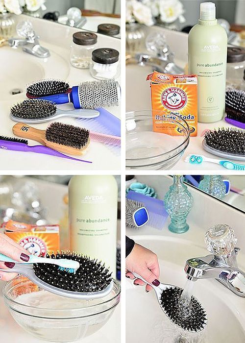 Οι τρίχες στη βούρτσα που αρνούνται πεισματικά να φύγουν από τη βούρτσα σας, τώρα δεν έχουν άλλη επιλογή! Γεμίστε ένα μπολ μέχρι τη μέση με ζεστό νερό, ρίξτε ένα κουταλάκι του γλυκού σαμπουάν και αντίστοιχη ποσότητα σόδας και αναμίξτε με την οδοντόβουρτσα. Μετά, «βουτήξτε» μέσα στο μίγμα τη βούρτσα των μαλλιών για να μαλακώσει και αρχίστε να τρίβετε με την οδοντόβουρτσα. Στο τέλος, ξεπλύνετε με νερό για ν΄ απομακρυνθούν τα υπολείμματα του μίγματος. Αφήστε τη βούρτσα να στεγνώσει και μετά θα είναι σαν καινούρια.
