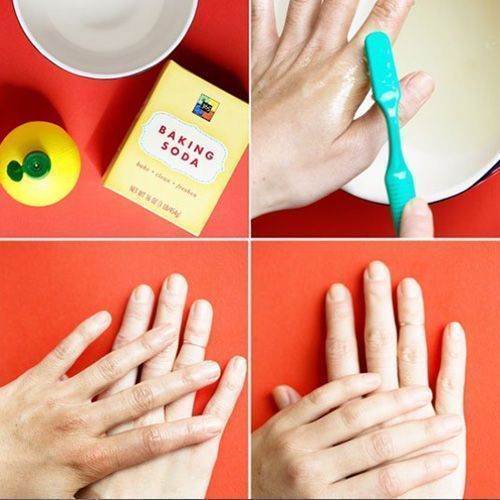 Τι θα χρειαστείτε: λίγο χυμό λεμονιού, μαγειρική σόδα και μια καινούρια οδοντόβουρτσα. Αναμίξτε τα συστατικά με την οδοντόβουρτσα μέχρι να γίνουν μια πάστα και έπειτα μ’ αυτή τα χέρια σας. Θα δείτε έκπληκτη ότι το χέρι σας κυριολεκτικά θα… ασπρίσει!