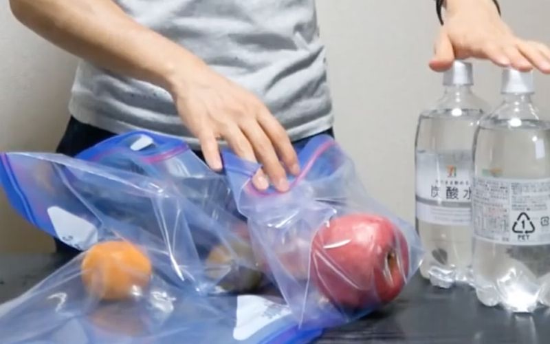 Ρίξτε το ανθρακούχο νερό μέσα στη σακούλα και σφραγίστε την. Βάλτε τα στο ψυγείο και περιμένετε 6-7 ώρες