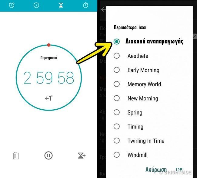 Μπορεί να μην το γνωρίζετε, αλλά ο χρονοδιακόπτης στο τηλέφωνό σας έχει μια πολύ καλή λειτουργία που όλοι οι λάτρεις της μουσικής ή του audiobook θα εκτιμήσουν. Με το χρονοδιακόπτη ύπνου που είναι ενσωματωμένος στην εφαρμογή ρολογιού, μπορείτε να ρυθμίσετε το χρόνο που χρειάζεστε και να επιλέξετε «Διακοπή αναπαραγωγής» από τη λίστα με τους ήχους κλήσης. Τώρα θα κοιμηθείτε εύκολα και η μουσική δεν θα σας ενοχλεί. Το τηλέφωνο θα τον απενεργοποιήσει αυτόματα.