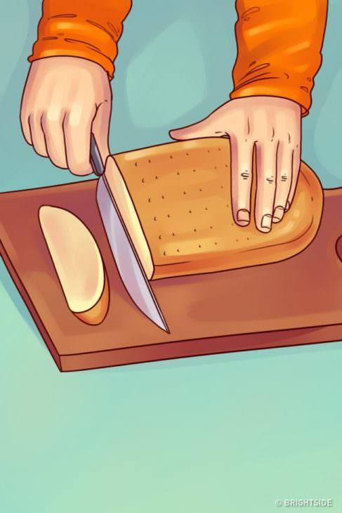 Για ν’ αποφύγετε την υπερβολική ψίχα κατά τον τεμαχισμό του ψωμιού, ακολουθήστε αυτόν τον απλό κανόνα: Τοποθετήστε το ψωμί στην πλάκα κοπής με την στρογγυλεμένη πλευρά στραμμένη προς τα κάτω.