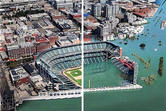 Τα αέρια που περιέχουν θερμότητα προκάλεσαν αύξηση της θερμοκρασίας της επιφάνειας της γης και ως εκ τούτου το επίπεδο της θάλασσας αυξήθηκε. Αυτό μπορεί να προκαλέσει μόλυνση των υδροφόρων και των γεωργικών εδαφών και την απώλεια οικοτόπων για τα ψάρια, τα πουλιά και τα φυτά. Χαμηλά νησιά, για παράδειγμα, όπως στο Μπαγκλαντές και τις Κάτω Χώρες, μπορούν ενδεχομένως να εξαφανιστούν εντελώς κάτω από το νερό.