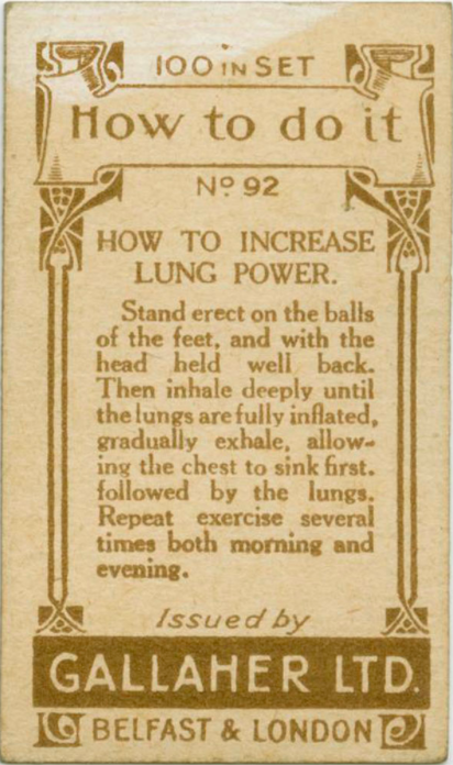 Αν θέλετε να ενδυναμώσετε τα πνευμόνια σας, αυτή η άσκηση είναι ευεργετική. Σταθείτε στις μύτες των ποδιών σας, με το κεφάλι σας να γέρνει προς τα πίσω. Έπειτα, αναπνεύστε βαθιά, μέχρι να ”γεμίσουν” τα πνευμόνια σας, επιτρέποντας το στήθος σας να μικρύνει.Επαναλάβετε την άσκηση κάθε πρωί και απόγευμα, αρκετές φορές.