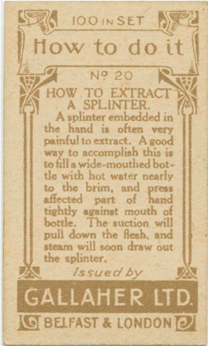 Όλοι ψάχνουμε καθημερινά διάφορα μυστικά και κόλπα που θα μας βοηθήσουν να κάνουμε τις καθημερινές μας δουλειές εύκολα και γρήγορα, και μερικές φορές η απάντηση έρχεται σε πράγματα που ούτε καν τα φανταζόμασταν. Μερικές φανταστικές λύσεις, δεν είναι καινοτόμες και δεν στηρίζονται στην τεχνολογία. Μερικές φορές οι λύσεις υπάρχουν εδώ και χρόνια και απλά δεν τις γνωρίζουμε. Οι φανταστικές λύσεις που θα σας παρουσιάσουμε, βρέθηκαν στις κάρτες «πώς να το κάνουμε» των παλιών κουτιών με τσιγάρα, που είναι πάνω από 100 χρόνια, αλλά εξακολουθούν να είναι απόλυτα σχετικές και χρήσιμες σήμερα. Ποιος να ήξερε οτι το παρελθόν θα έχει τόσα πολλά να προσφέρει;