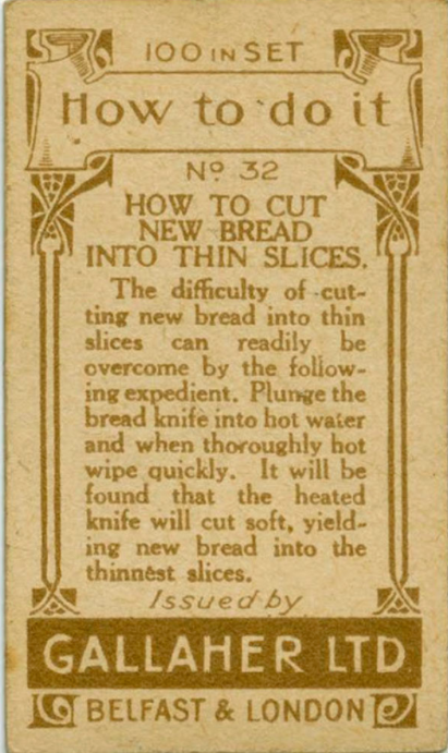 Το να κάψουμε πολλές φέτες ψωμιού κατά τις οικογενειακές συγκεντρώσεις και όχι μόνο μπορεί να καταλήξει σε ένα πραγματικό εφιάλτη. Άνισες φέτες ψωμιού αλλά και ψίχουλα παντού. Κόψτε ομοιόμορφα το ψωμί σας εύκολα και γρήγορα με αυτόν τον αποτελεσματικό τρόπο. Βυθίστε το μαχαίρι σε ζεστό νερό για 10-15 λεπτά και στην συνέχεια κόψτε το ψωμί με αργές κινήσεις.