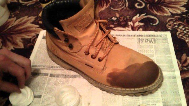 Για να καθαρίσετε υποδήματα από σκληρό δέρμα, αναμείξτε αλκοόλη με νερό σε αναλογία 1: 3 ή διαλύστε 1 κουταλιά ξύδι σε 1 λίτρο ζεστό νερό.