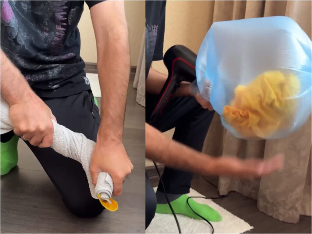 Μάλιστα επειδή η συγκεκριμένη τεχνική είναι πολύ αποδοτική κυκλοφορούν και συσκευές με ενσωματωμένο πιστολάκι και σάκο για να στεγνώσεις γρήγορα τα ρούχα σου ακόμη κι όταν είσαι ταξίδι. Ο χρήστης του youtube @MR.alexkos μας δείχνει πώς ακριβώς να το κάνουμε βήμα βήμα.