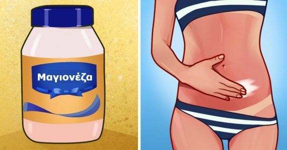 1. Ανακουφίστε το δέρμα από ηλιακό έγκαυμα Αντικαταστήστε την αλόη με μαγιονέζα για να ανακουφίσετε το ηλιακό έγκαυμα.