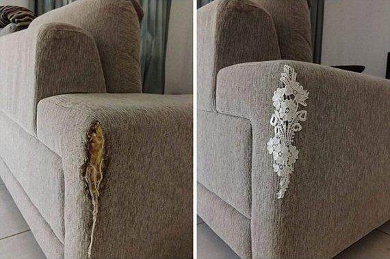 - Αν έχει σκιστεί η άκρη του καναπέ σου, ράξε πάνω του ένα διακριτικό σεμεδάκι.