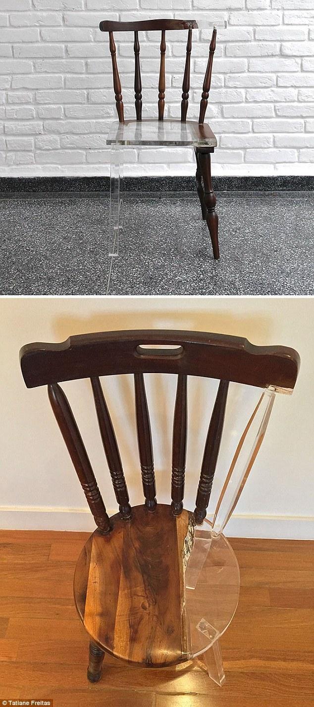 - Ακόμη κι αν η μισή ξύλινη καρέκλα έχει σπάσει, κόλλησε την με ένα πλαστικό αντικείμενο. Το αποτέλεσμα θα είναι εντυπωσιακό.