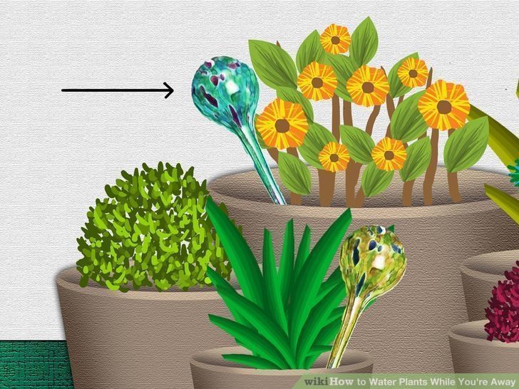 Επιστράτευσε όσα άδεια μπουκάλια από εμφιαλωμένο νερό ή αναψυκτικά διαθέτεις (χωρητικότητας 1,5 λίτρου). Γέμισέ τα με νερό, κάνε μια μικρή τρύπα στο καπάκι τους και φύτεψέ τα αναποδογυρισμένα, ένα μέσα σε κάθε γλάστρα, φροντίζοντας να έχουν την κατάλληλη κλίση. Η πιο σωστή θέση του μπουκαλιού δεν είναι η απόλυτα κάθετη, αλλά εκείνη στην οποία θα δεις να ανεβαίνει μια φυσαλίδα μέσα στο μπουκάλι. Αν δεις το νερό να κατεβαίνει γρήγορα έχοντας πολλές φυσαλίδες, σημαίνει ότι δεν έχει εφαρμόσει καλά στο χώμα, οπότε θα πρέπει να διορθώσεις τη θέση του. Το φυτό θα τραβάει όσο νερό του χρειάζεται σε αργούς ρυθμούς. Για καλύτερη απόδοση σκέπασε την επιφάνεια του χώματος με μερικά πλατιά βότσαλα, ώστε να συγκρατείται περισσότερο η υγρασία. Υπολόγισε ότι το νερό θα κρατήσει για περίπου μία εβδομάδα.
