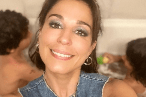 Η γνωστή ηθοποιός απολαμβάνει τις διακοπές της στη Σητεία μαζί με τα παιδιά της, Κίμωνα και Μάξιμο αλλά και με άλλα μέλη της οικογένειάς της.