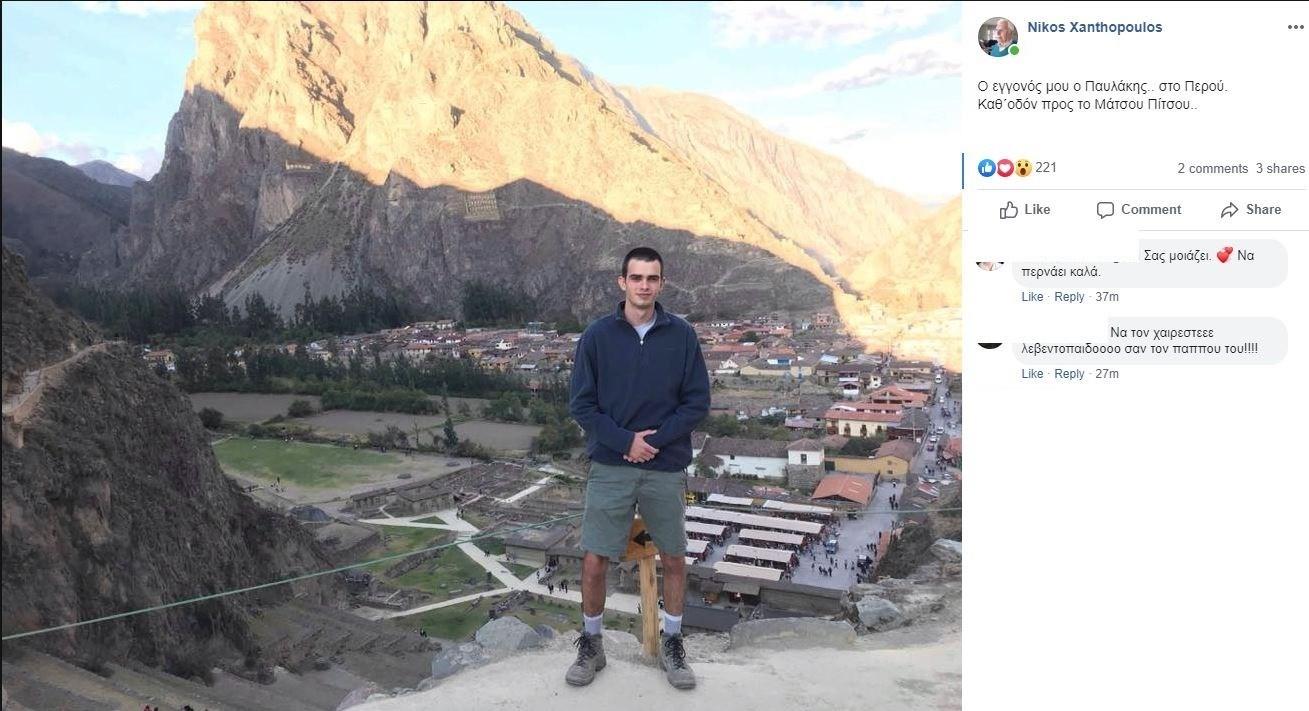 «Ο εγγονός μου ο Παυλάκης στο Περού. Καθ´οδόν προς το Μάτσου Πίτσου», έγραψε σε λεζάντα δίπλα από τη φωτογραφία.