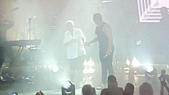 «Σε αυτό το σημείο θέλω να πω του πατέρα μου να ανεβάσει τη μάνα μου στη σκηνή να χορέψει ένα ζεϊμπέκικο άμα γουστάρει, γιατί άμα δε γουστάρει μπορεί να με βρίσει κιόλας», είπε καλώντας τη μητέρα του Κλειώ – που γιόρταζε μάλιστα χθες- στη σκηνή. Εκείνη ανταποκρίθηκε στο κάλεσμα σύμφωνα με το protothema.gr και μετά από λίγο ο Γιώργος Μαζωνάκης γονάτισε στη σκηνή για να της τραγουδά όσο εκείνη χορεύει σε μια ομολογούμενως πολύ ξεχωριστή στιγμή.