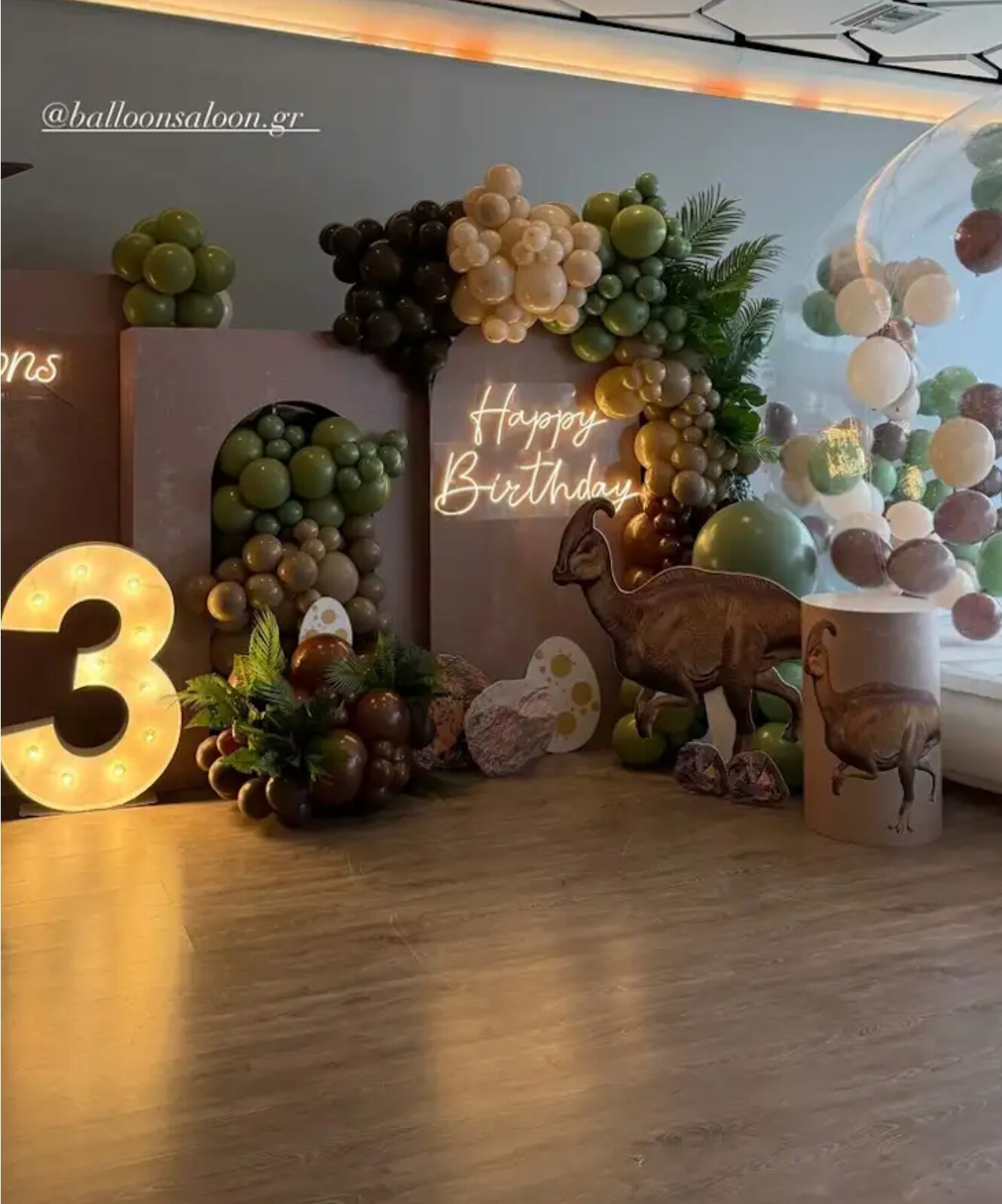 «Χρόνια πολλά έρωτά μου. Η μαμά θα είναι πάντα δίπλα σου να σε αγαπάει και να σε προσέχει», έγραψε η Ιωάννα Τούνη στη φωτογραφία στην οποία κρατά αγκαλιά τον Πάρη της. Το concept ήταν «dinosaur party», με εντυπωσιακό στολισμό σε γήινες αποχρώσεις.