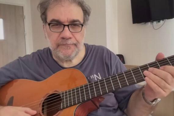 Ο ίδιος κρατάει την κιθάρα του και χαμογελώντας στην κάμερα κάνει αυτό που ξέρει να κάνει καλύτερα από κάθε τι άλλο, παίζει δηλαδή μουσική! Η χαρά στο πρόσωπό του περιγράφει την ανάγκη, που είχε ο Δημήτρης Σταρόβας μετά από όλη αυτή την περιπέτεια υγείας να ασχοληθεί και πάλι με την αγαπημένη του κιθάρα.