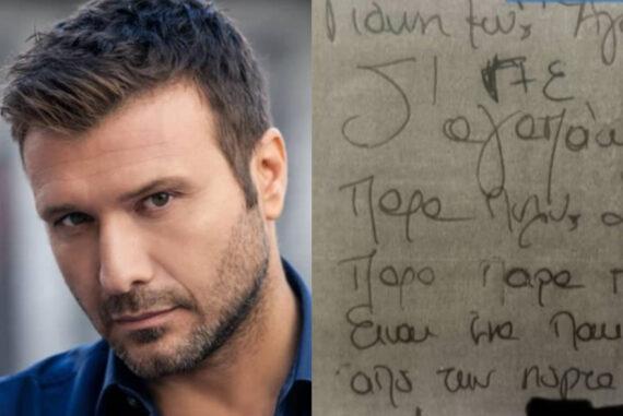 Το ερωτικό σημείωμα της stalker θαυμάστριά, που παρενοχλούσε τον Γιάννη Πλούταρχο, έφερε στο φως της δημοσιότητας η εκπομπή του MEGA, “Buongiorno” με την Φαίη Σκορδά.