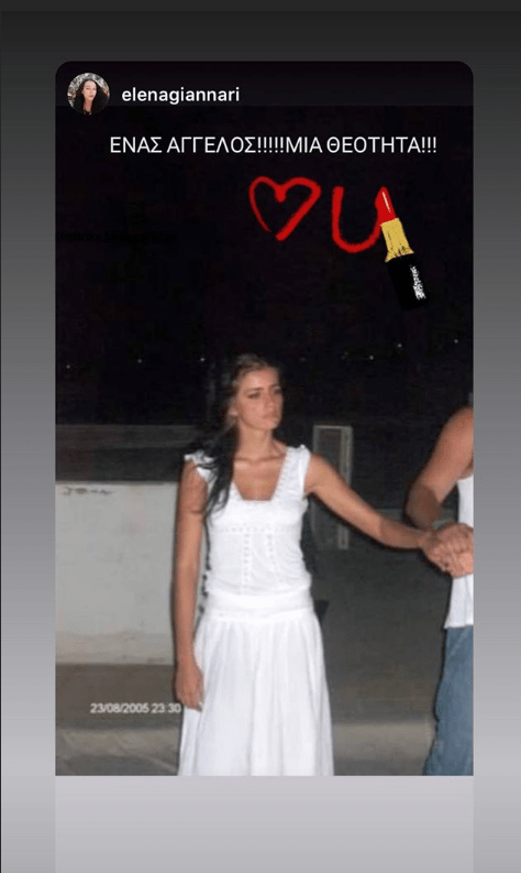 Η «Λενιώ» από τις «Άγριες Μέλισσες» αναδημοσίευσε τη φωτογραφία άλλου χρήστη στο instagram και συγκεκριμένα της Έλενας Γιάνναρη, η οποία σχολίαζε «ΕΝΑΣ ΑΓΓΕΛΟΣ!!!!ΜΙΑ ΘΕΟΤΗΤΑ!».