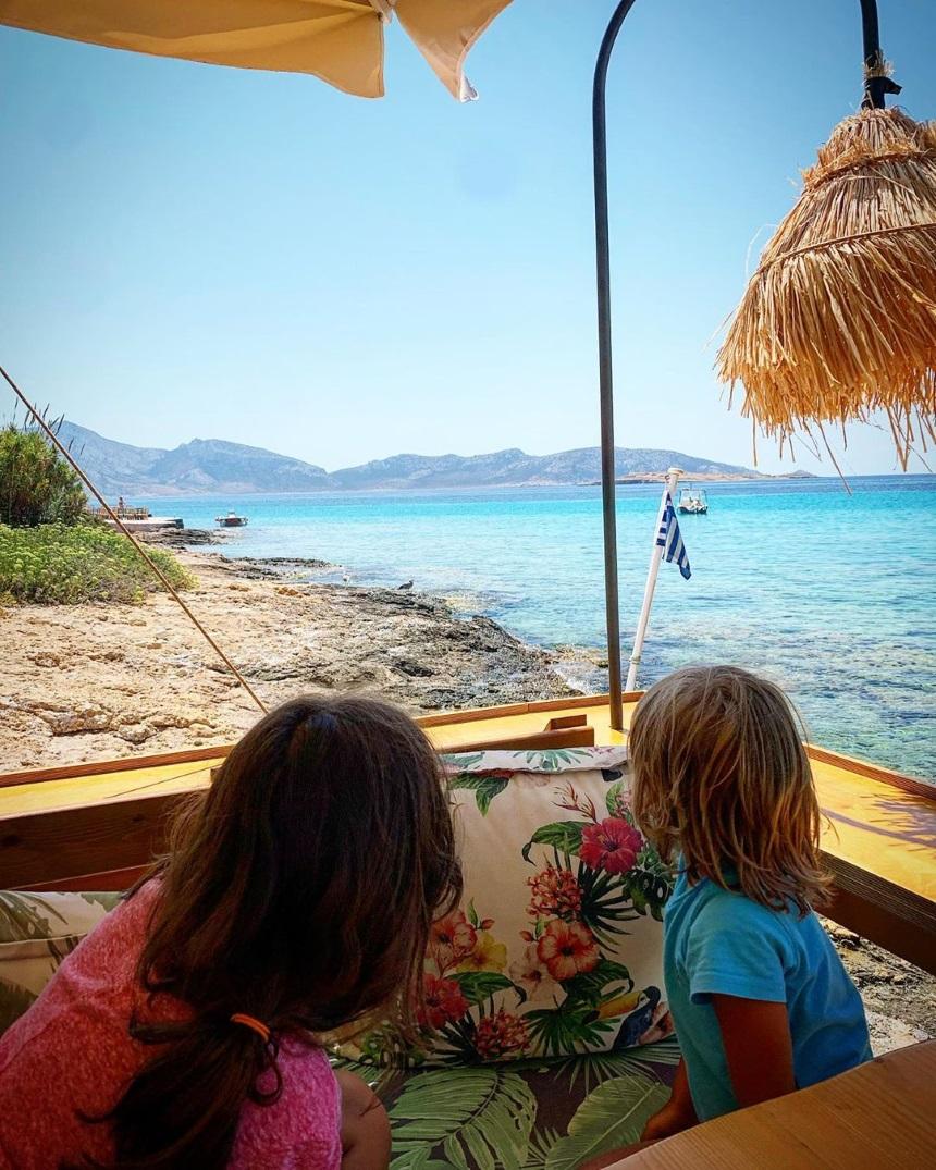 «Το βλέμμα προς τη Κέρο…μαγνητισμένοι από την ομορφιά της και τα πέντε μπλε αυτής της θάλασσας! Αγαπημένος ευλογημένος τόπος…γαληνεύει η ψυχή και καθαρίζει ο νους, επιτέλους»