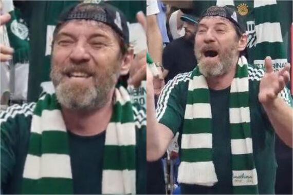 Εκσταστιασμένος από τη νίκη του Παναθηναϊκού και ντυμένος στα πράσινα ο γνωστός ηθοποιός τραγούδησε με πάθος το γνωστό πράσινο σύνθημα για το «χόρτο μαγικό».