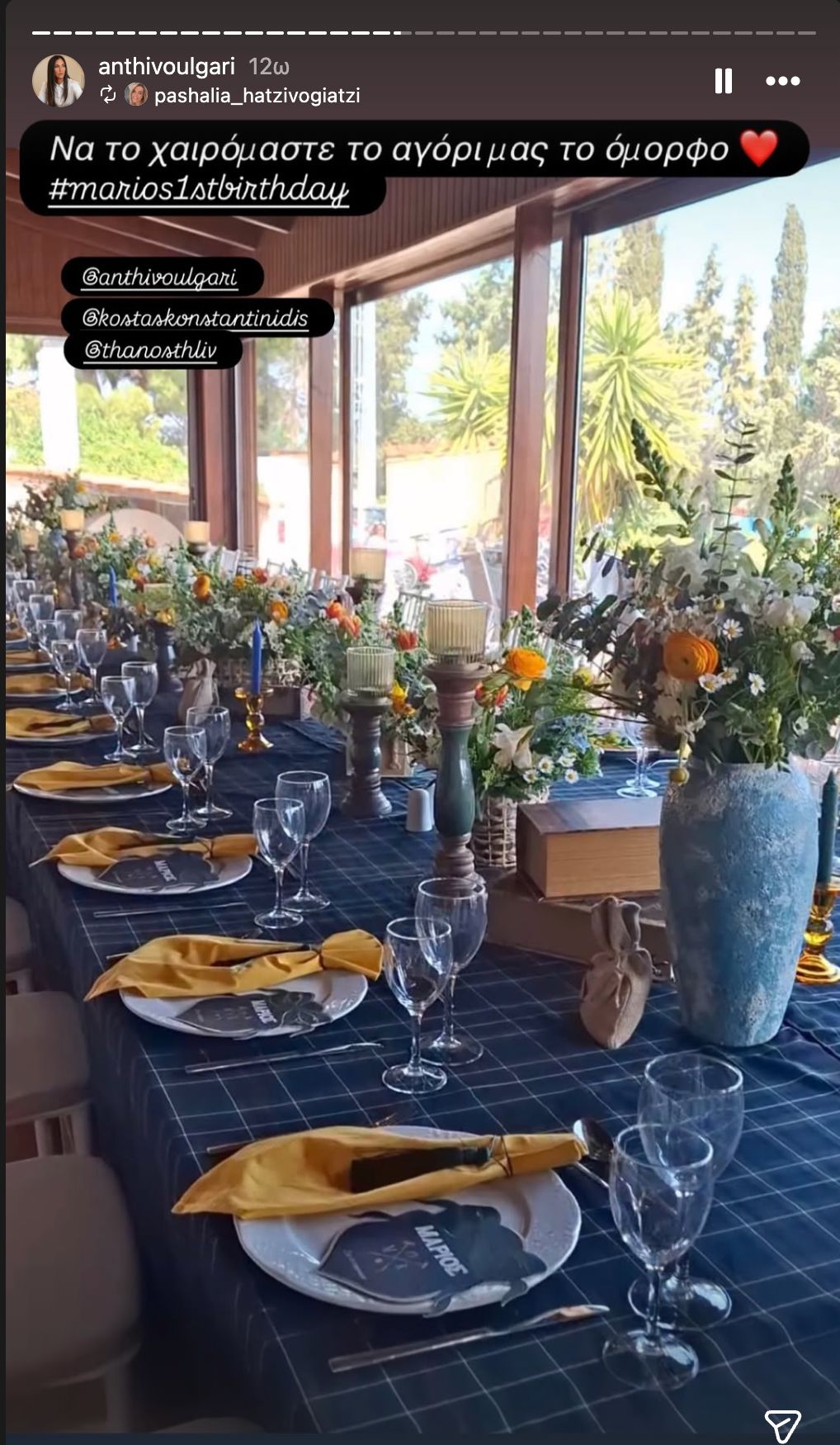 Την Κυριακή 15/03, η Ανθή Βούλγαρη και ο σύζυγός της, Κώστας Κωνσταντινίδης γιόρτασαν τα πρώτα γενέθλια του γιου τους, Μάριου, μέσα σε ένα παραμυθένιο κλίμα, παρουσία συγγενών και φίλων.