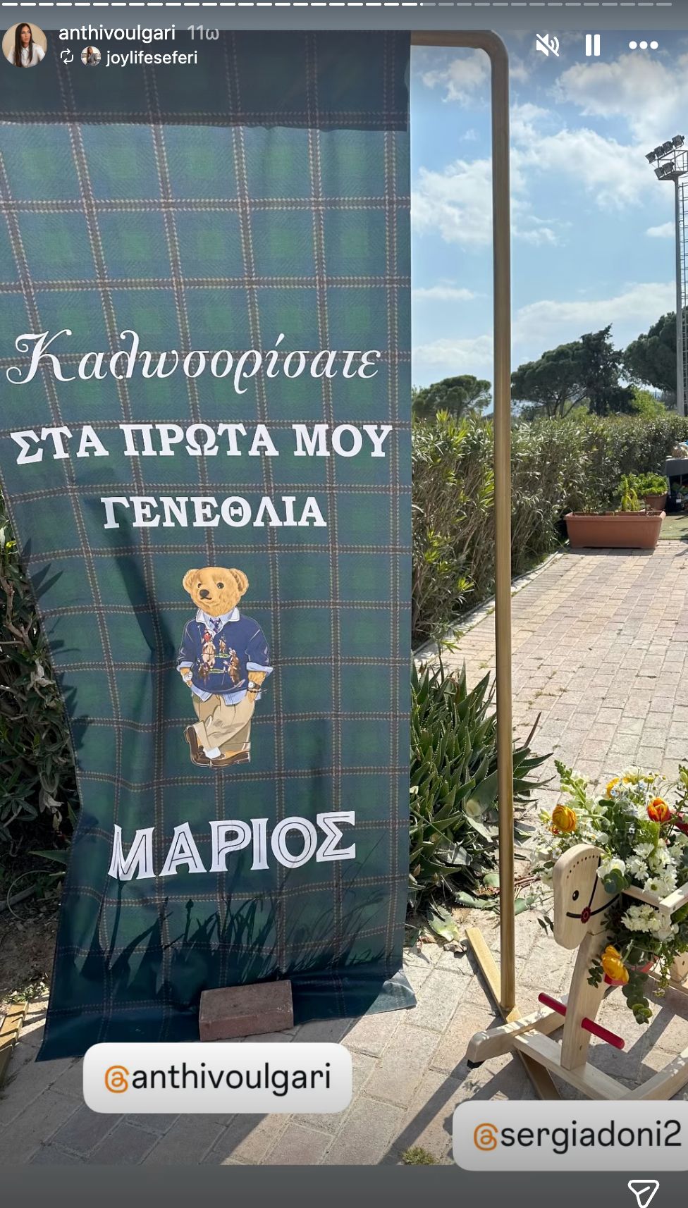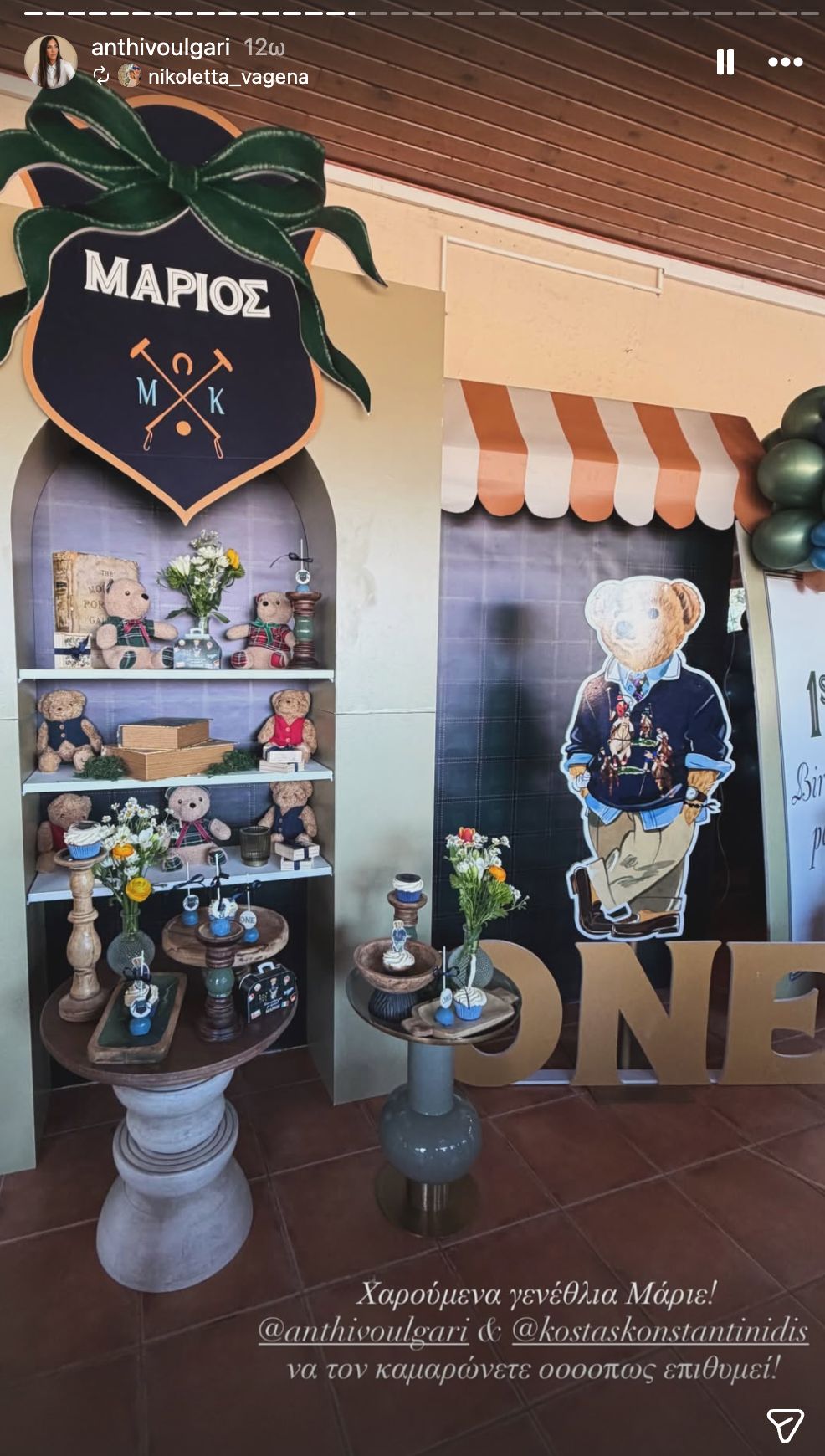 Με αφορμή τα πρώτα γενέθλια του μικρού, η Ανθή Βούλγαρη και ο Κώστας Κωνσταντινίδης διοργάνωσαν ένα μεγάλο πάρτι, στο οποίο βρέθηκαν συγγενείς, φίλοι και συνεργάτες τους. Ο χώρος είχε γεμίσει με πολύχρωμα μπαλόνια και αρκουδάκια, δημιουργώντας μια ατμόσφαιρα ιδανική για παιδικό πάρτι.
