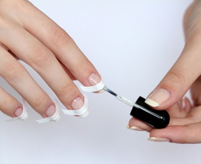 - Τα αυτοκόλλητα για τα νύχια σας (για παράδειγμα, για να σας βοηθήσουν να κάνετε ένα γαλλικό μανικιούρ) θα πρέπει να χρησιμοποιούνται με τέτοιο τρόπο ώστε η γωνία να εξέχει λίγο από το τέλος του νυχιού.