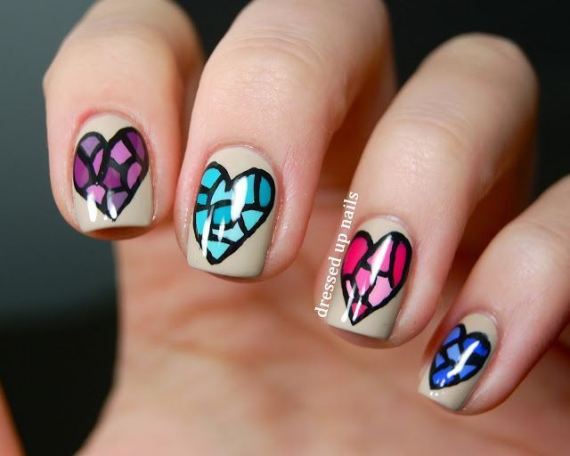 11. Καρδούλες βιτρώ σχέδια νυχιών
