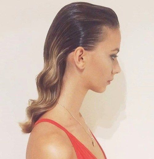 8.) Υπέροχα wet look με τα μαλλιά στραμμένα προς τα πίσω και με ελαφρούς κυματισμούς