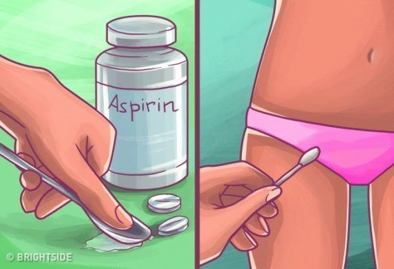 Η ασπιρίνη μπορεί να κάνει θαύματα στην θεραπεία των ερεθισμών στο μπικίνι. Περιέχει σαλικυλικό οξύ το οποίο βοηθά σταν απολέπιση του δέρματος και στην απελευθέρωση των γυρισμένων τριχών. Πάρτε 3-4 χάπια ασπιρίνης και ανακατέψτε τα με νερό για να φτιάξετε μια κρέμα. Απλώστε την μάσκα στο πρόσωπο και αφήστε την να στεγνώσει. Ξεπλύντε καλά.