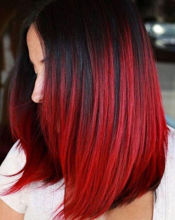 Το μπλε ombre είναι ιδανικό για τις γυναίκες με ανοιχτόχρωμη επιδερμίδα, οπότε όσες τείνετε στους ζεστούς τόνους, το κόκκινο ombre πολύ πιθανόν να σας ταιριάξει. Αν θέλεις να διατηρήσεις την σκούρα μελαχρινή βάση, αλλά να ανοίξεις τις ρίζες, σκέψου να δοκιμάσεις αυτό το εντυπωσιακό λαμπερό κόκκινο χρώμα.