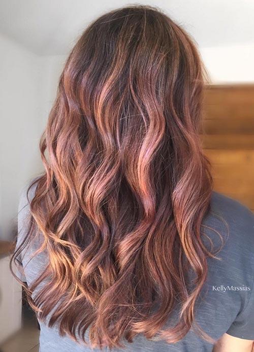 Αγαπάμε το ροζ χρυσό όχι μόνο στα αξεσουάρ και στα ρούχα μας, αλλά πλέον και στα μαλλιά! Ένα σούπερ φανταστικό μπαλαγιάζ, που συμπεριλαμβάνει αποχρώσεις του ανοιχτού καστανού, κόκκινου, και ροζ και προσφέρει ένα μοναδικό αποτέλεσμα. Η βάση παραμένει σκούρα και κάνει κάθε χτένισμα που θα κάνεις μοναδικό, ειδικά αν αποφασίσεις να δημιουργήσεις ανάλαφρες μεγάλες μπούκλες για να τονίσεις τις ανταύγειες.