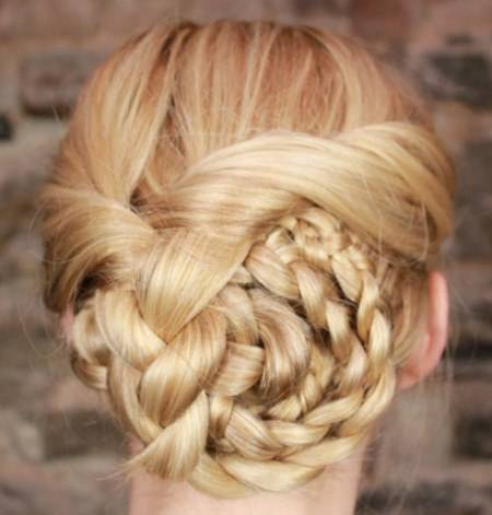 Αυτό είναι ένα από τα πιο ελκυστικά χτενίσματα για ξανθιές γυναίκες. Απλά πρέπει να δημιουργήσετε δύο πλεξούδες στο μπροστινό τμήμα των μαλλιών και στη συνέχεια να τις ανακατέψετε σε ένα πολυεπίπεδο κουλούρι.