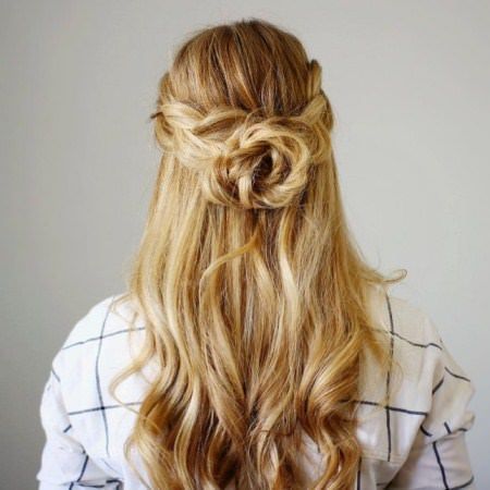 To Half Updo με ένα λουλούδι πλεγμένο είναι ένα από τα απλούστερα στυλ για να δημιουργήσετε. Συγκεντρώστε to μέσο τμήμα των μαλλιών από το στέμμα και κάντε μια απλή πλεξούδα. Στριφογυρίστε αυτή τη πλεξούδα για να κάνετε ένα λουλούδι.