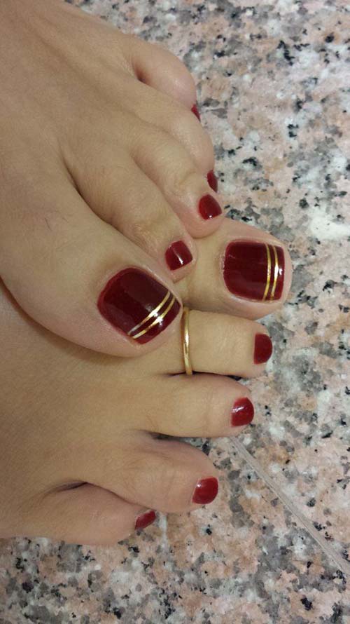 Σχετικά με τις γραμμές σαν σχέδιο νυχιών, αξίζει να σημειωθεί πως μπορούν να δημιουργηθούν τόσο με ένα λεπτό πινελάκι, όσο και με την απλή εφαρμογή αυτοκόλλητων ταινιών μανικιούρ – πεντικιούρ.